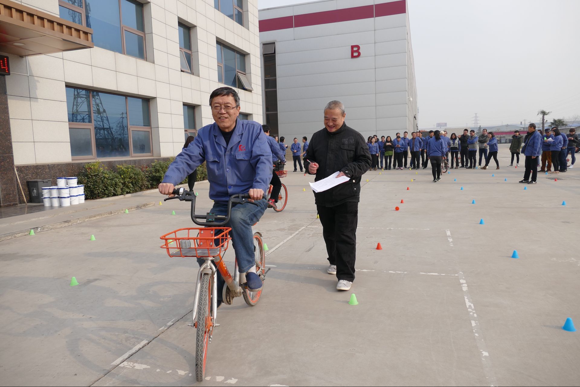 晴空萬(wàn)里,員工開始為慢騎比賽做準(zhǔn)備,熟悉慢騎的感覺(jué)。本次比賽分六個(gè)賽道,比賽騎行距離為30米,參賽選手只能在規(guī)定的區(qū)域內(nèi)慢騎,不得壓線和雙腳落地,騎車時(shí)間最長(zhǎng)者為獲勝者。