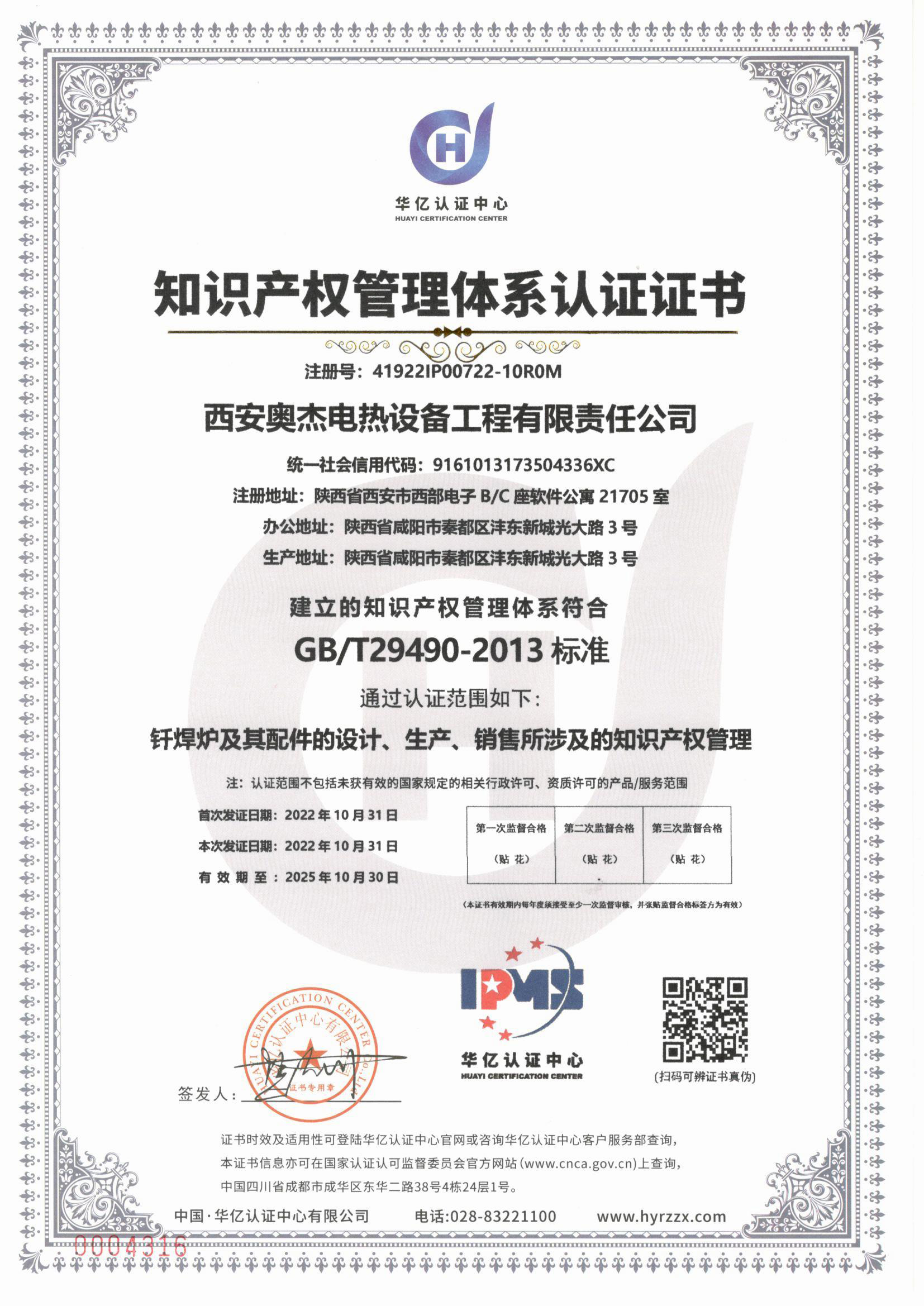 西安奧杰于2022年12月2日舉辦了知識(shí)產(chǎn)權(quán)管理體系認(rèn)證證書頒發(fā)儀式